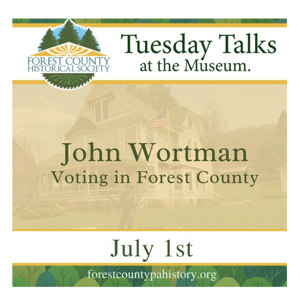 https://forestcountypahistory.org/wp-content/uploads/2019/08/Forest-County-Historical-Society-Logo-156.png00Aimee Haslethttps://forestcountypahistory.org/wp-content/uploads/2019/08/Forest-County-Historical-Society-Logo-156.pngAimee Haslet2025-06-09 10:01:102025-06-09 10:01:13Tuesday Talk June 17th