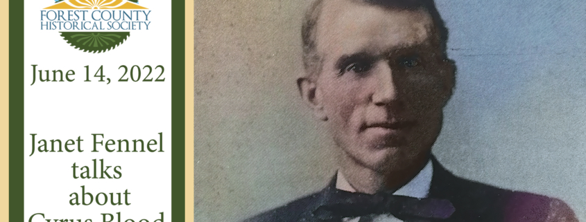 FCHS Board member, Janet Fennel will talk about Cyrus Blood who founded Forest County and Marienville.